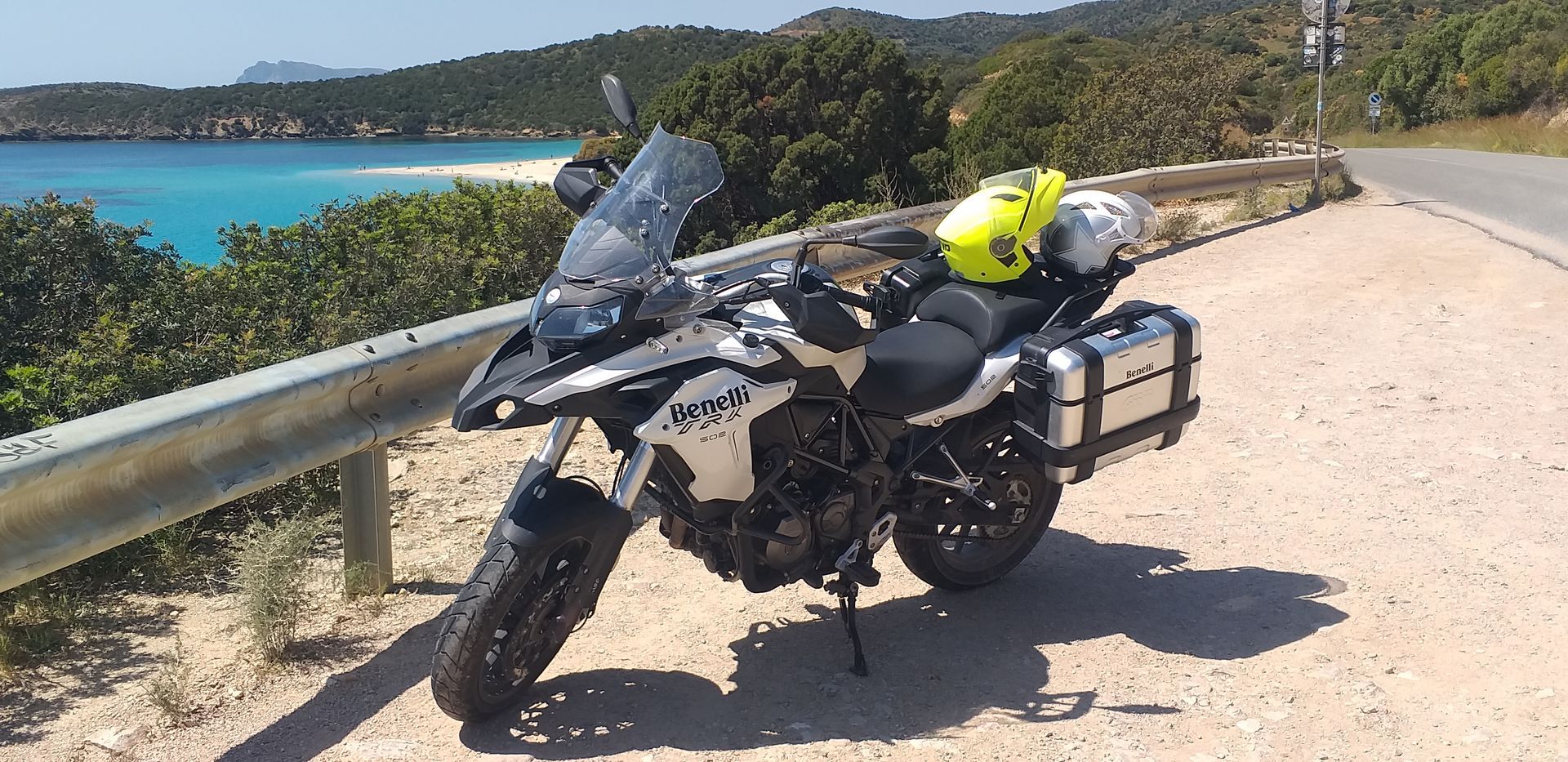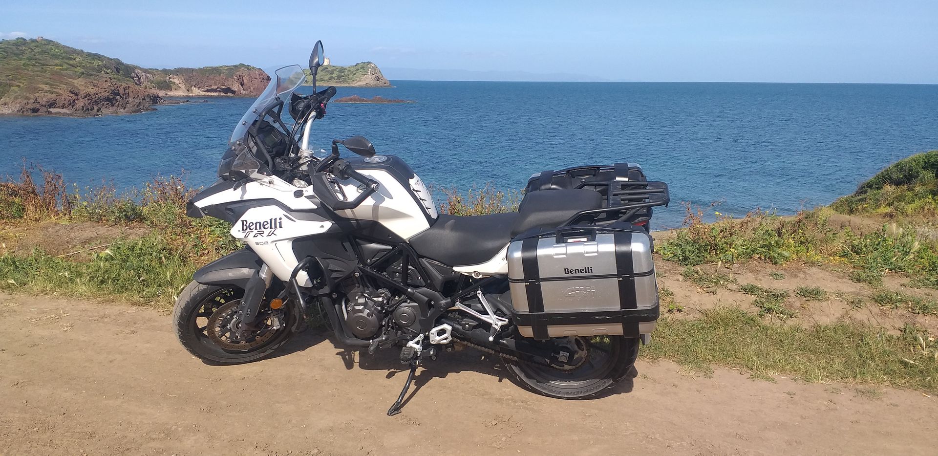 Questa moto da strada d'importazione è un ottima moto da viaggio, con una guida comoda in quanto dotata dotata di un'adeguata protezione aerodinamica con cupolino e paramani. Noleggiata con due borse da viaggio.